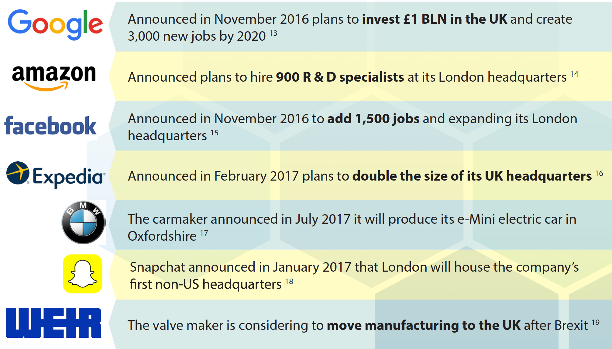 Not only are companies continuing to invest in the UK. There are also more and more examples of world-leading multinational corporations planning to expand their UK operations significantly in the future.