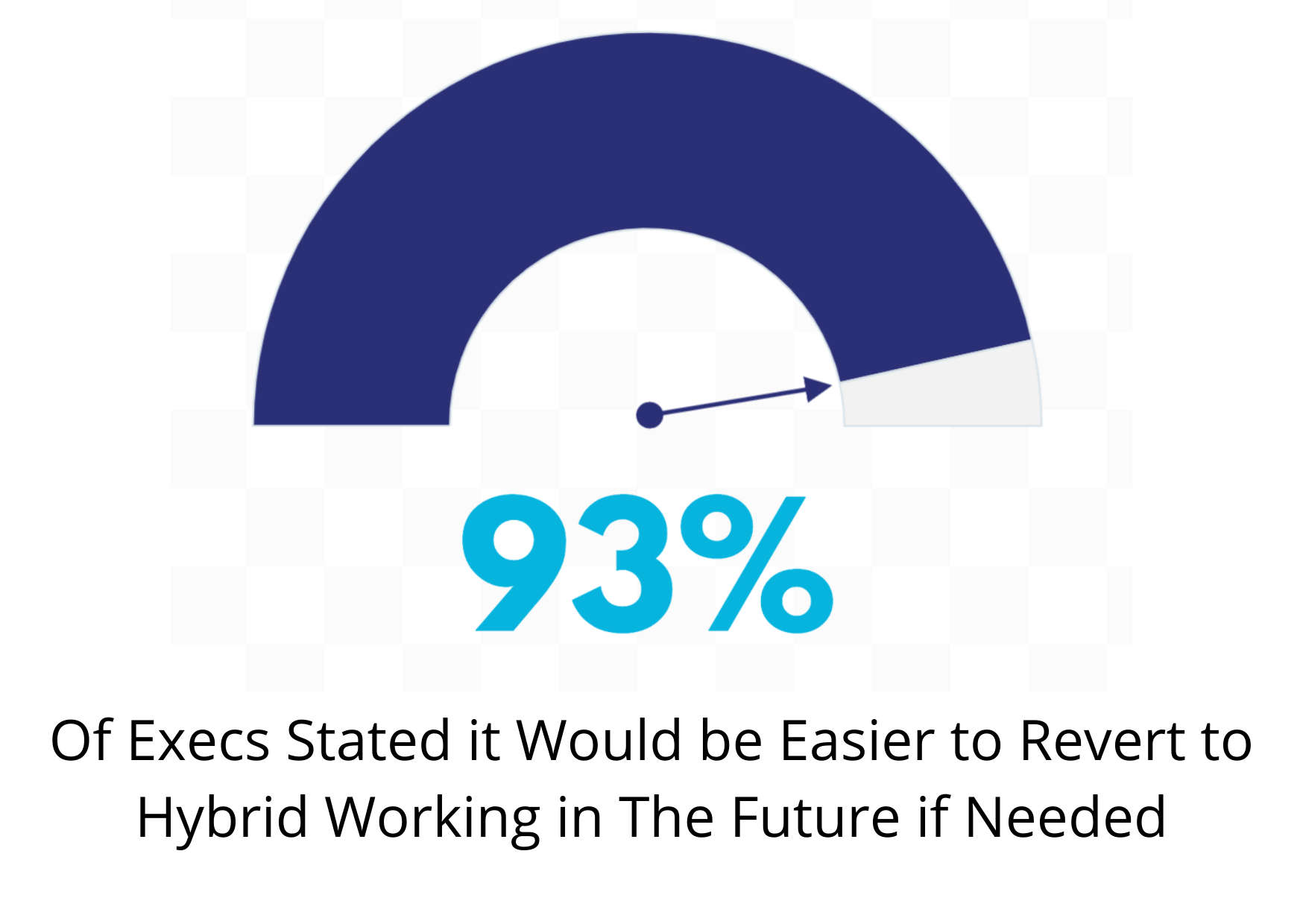 95% of executives also stated that they felt the ability for staff to work in a hybrid manner either would (68%), or maybe would (27%), benefit a business by making it more future-proof. This may, in part, be the reason many execs would consider changing roles for the ability to work in a hybrid fashion – Top executives would certainly be more drawn to businesses they consider future-proof.