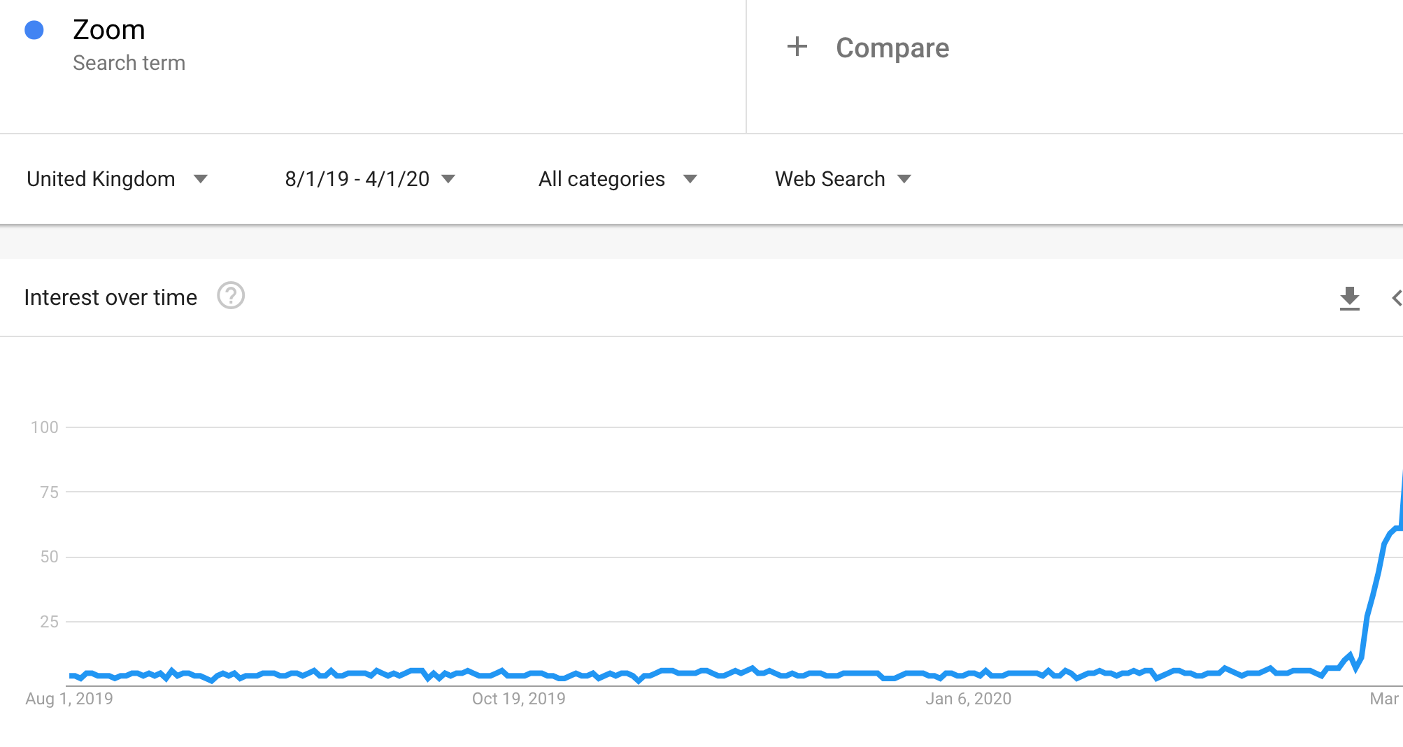 But Zoom seems to have performed the best and been the most sought-after software tool with the execs we surveyed. In fact, looking at Google Trends for the name the top-reported software, ‘Zoom’, search for this product shot up during the first quarter of 2020, as can be seen below:
